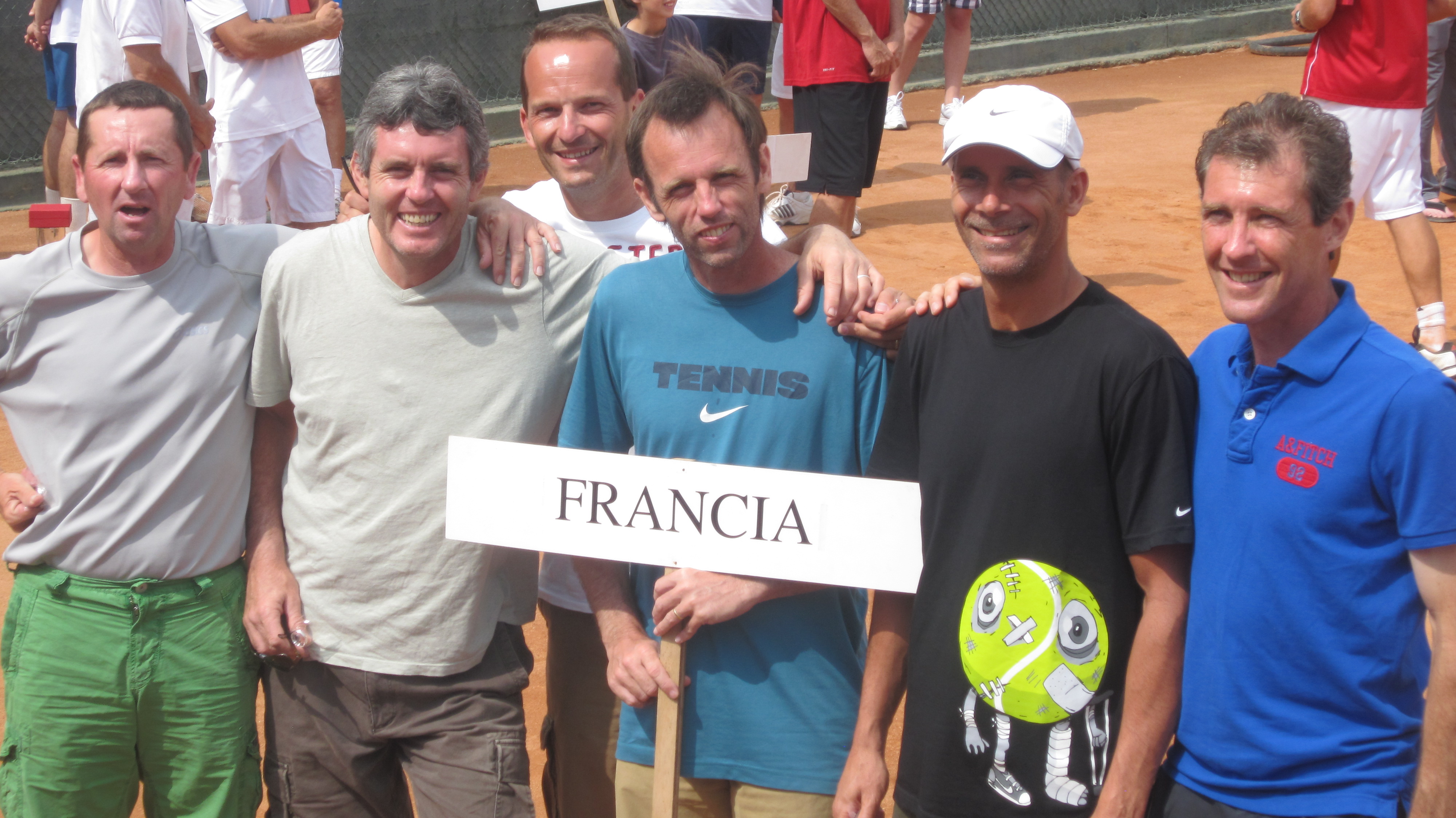 Restait la Petite finale le lendemain, contre l’Italie, Arnaud retrouvait son tennis et le chemin de la victoire en sauvant 3 balles de match …et de rencontre, car nous n’avions gagné qu’un autre match grâce à Jean Leclercq, en grande forme, invaincu cette année. Deux doubles intenses, qui finissaient au Super Tie-break, avec une double victoire française.
