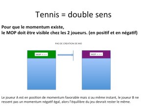 Si, après un point gagné, le joueur A est en position de momentum favorable mais si au même instant, le joueur B ne ressent pas un momentum négatif égal, alors l’équilibre du jeu devrait rester le même.